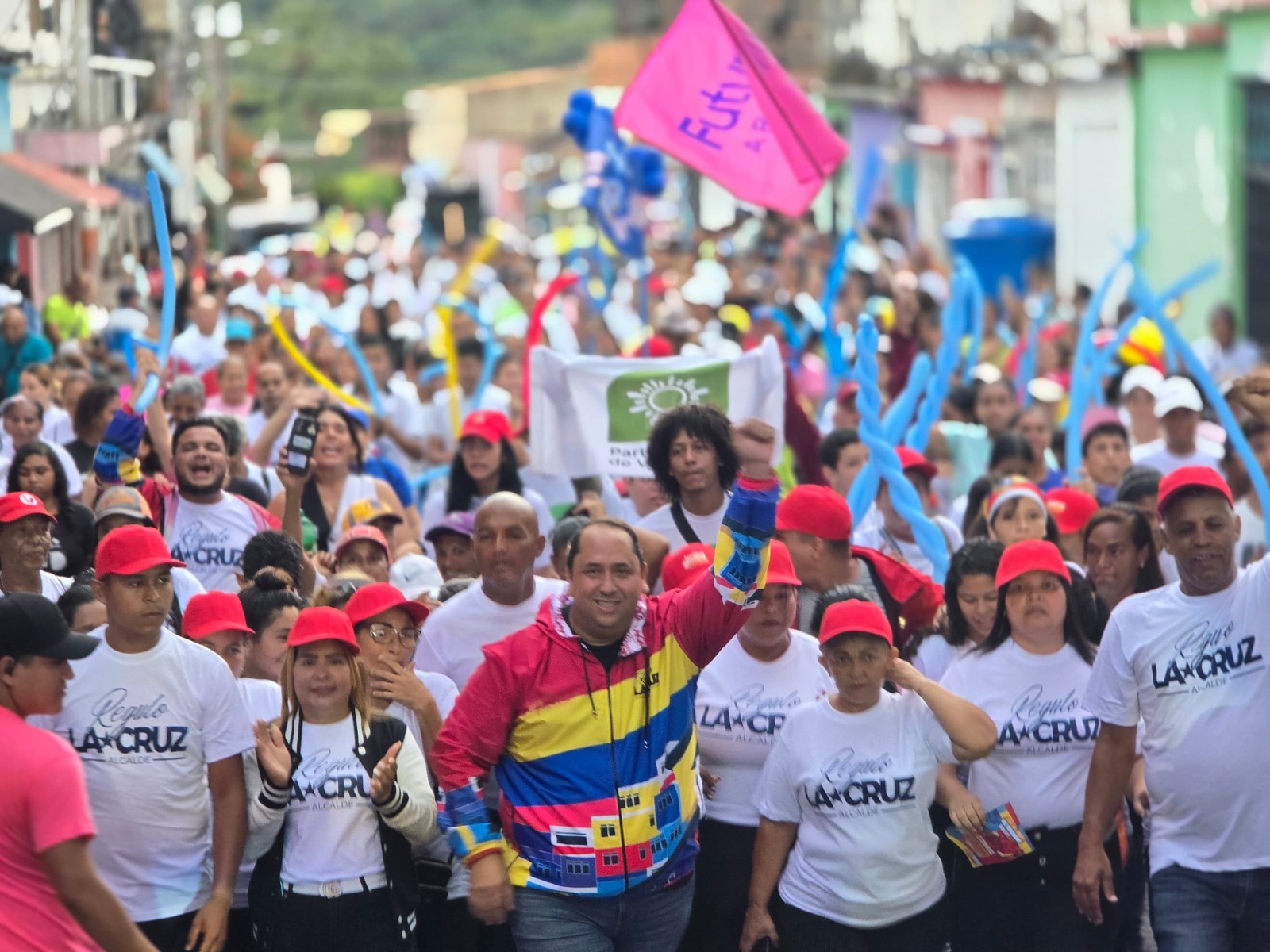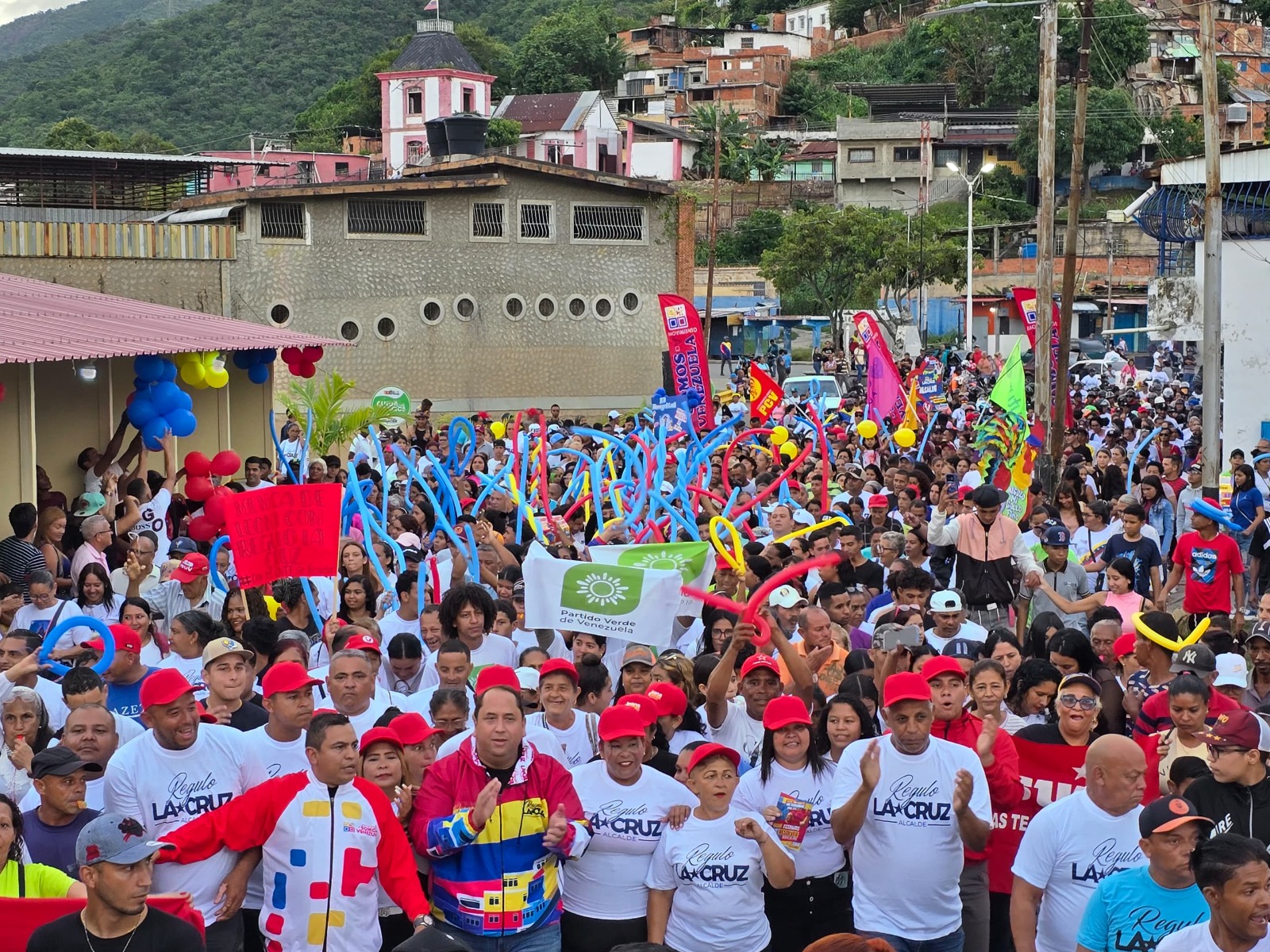 Ciudad MCY.-Con un masivo respaldo del Poder Popular, el candidato a la Alcaldía del municipio Santos Michelena por el Gran Polo Patriótico Simón Bolívar (GPPSB), Régulo La Cruz, cerró su campaña electoral en un recorrido lleno de entusiasmo por Las Tejerías, reafirmando su compromiso con la transformación, el desarrollo y una nueva gobernanza para la localidad.