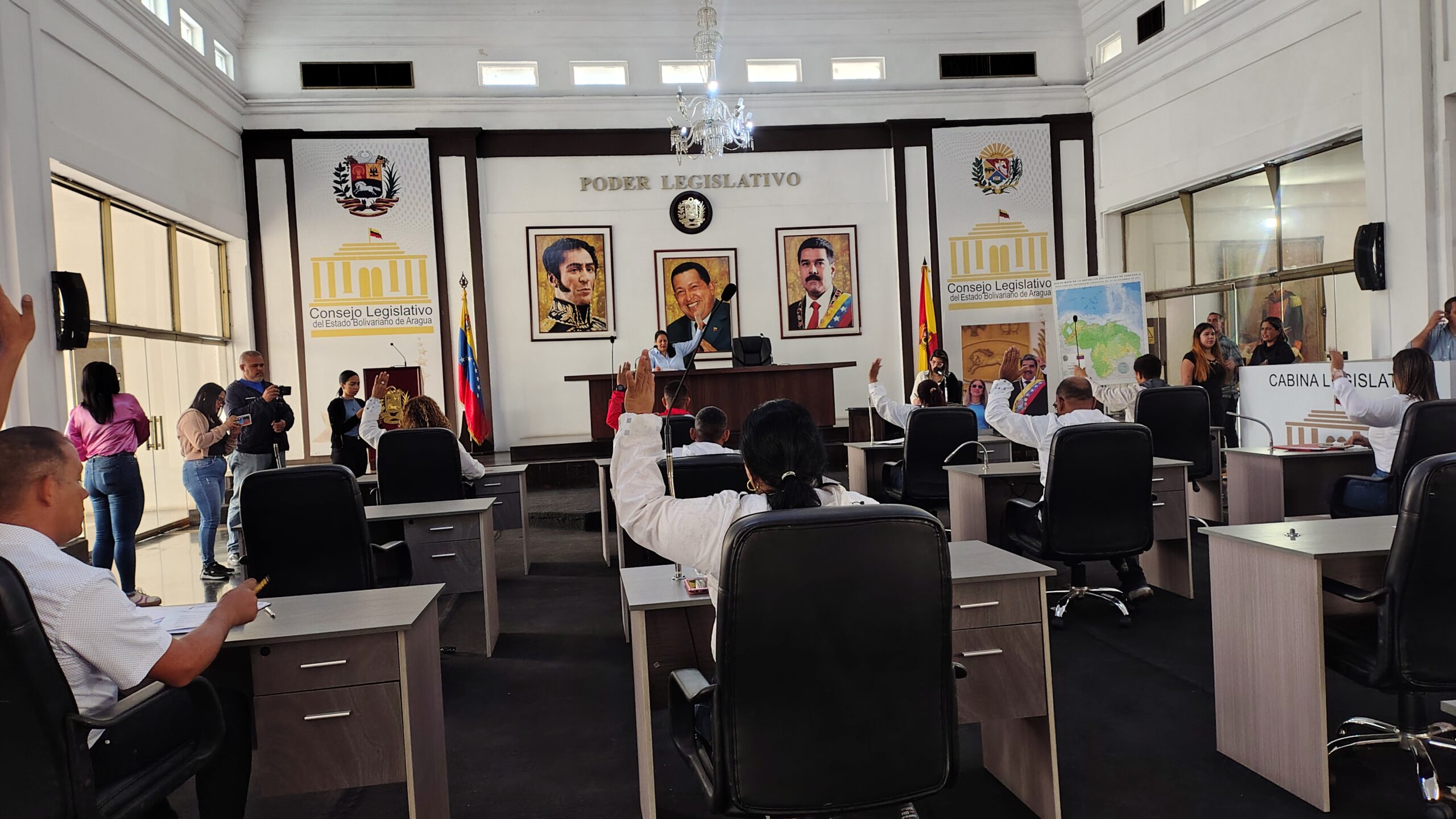 CIUDAD MCY.- El Palacio Legislativo de Aragua fue un epicentro de compromiso que viaja del pasado heroico a la gestión del presente. En sesión ordinaria, el Consejo Legislativo del estado Bolivariano de Aragua (Cleba), bajo la conducción de su presidenta Katiana Hernández y el vicepresidente Johan Norato, aprobó varios acuerdos, entre ellos, el referido a la exaltación de la Victoria Popular durante el mes de abril, el reconocimiento al pueblo comunicador y el respaldo a la gestión de la vocera de la aragüeñidad Joana Sánchez.