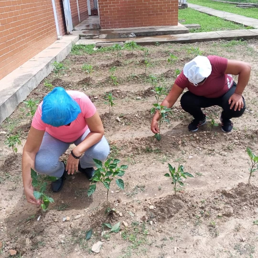 En este sentido, la jornada incluyó labores de limpieza activa de camellones de pimiento, ají, cebollín y tomate, riego y seguimiento a plántulas, garantizando así el óptimo desarrollo de estas especies esenciales para la dieta local.