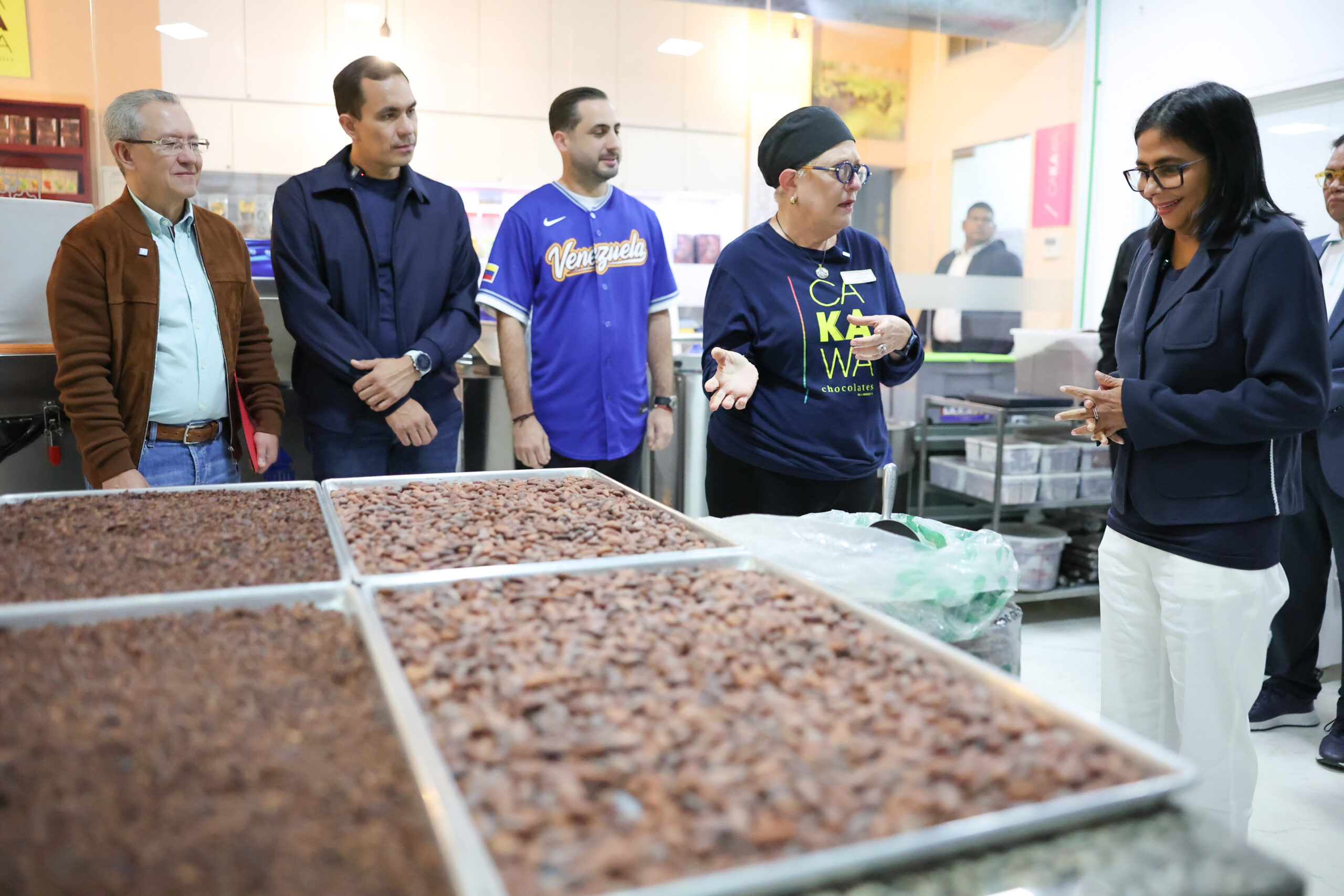 CIUDAD MCY.-En el marco de la agenda de fortalecimiento económico y apoyo al sector productivo nacional, la presidenta Encargada de la República Bolivariana de Venezuela, Delcy Rodríguez, realizó una visita a las instalaciones de la Compañía Anónima «Cakawa», reconocida empresa dedicada al procesamiento de cacao y chocolatería de alta gama.