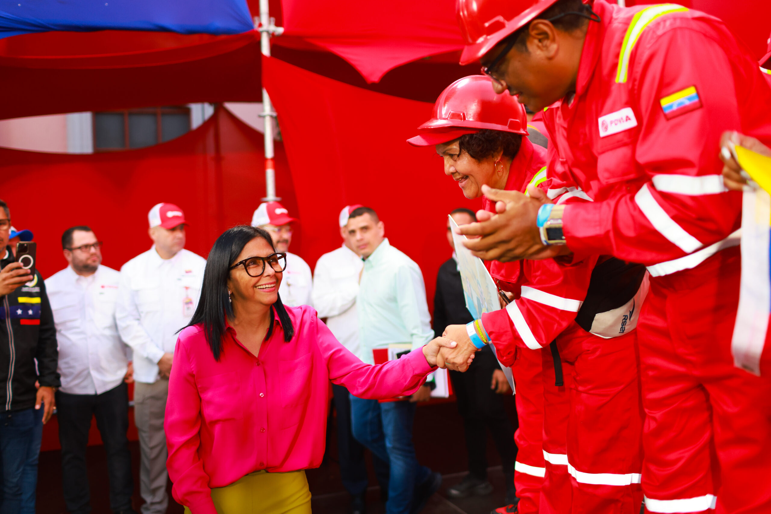 CIUDAD MCY.- Este jueves, la presidenta encargada de la República Bolivariana de Venezuela, Delcy Rodríguez, recibe en las adyacencias de la Casa del Pueblo, a los venezolanos que se sumaron a la Gran Marcha de la Clase Obrera, en respaldo a la Ley Orgánica de Hidrocarburos y el respeto a la Soberanía de la Nación.
