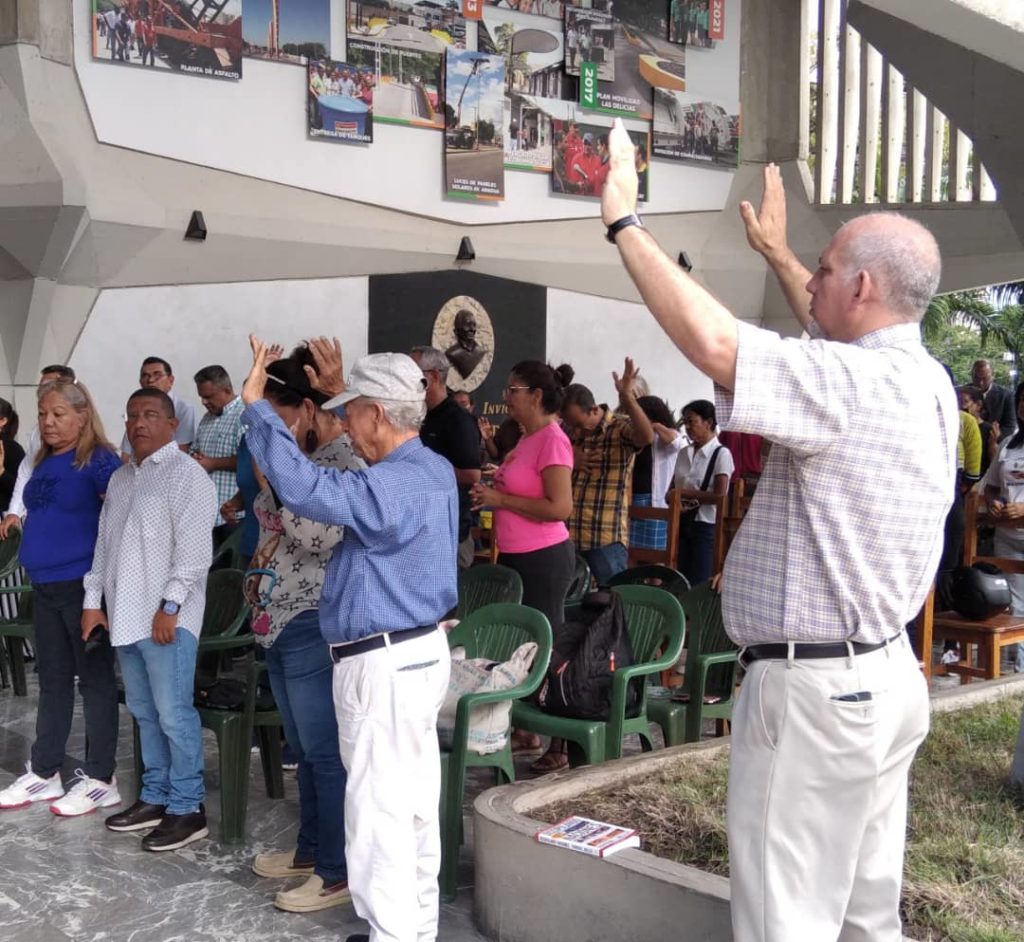CIUDAD MCY.- Desde la pérgola de la alcaldía de Girardot se llevó a cabo un clamor por las familias aragüeñas junto a las iglesias del estado en compañía del pueblo Cristiano, pastores, pastoras y la máxima autoridad regional Karina Carpio.