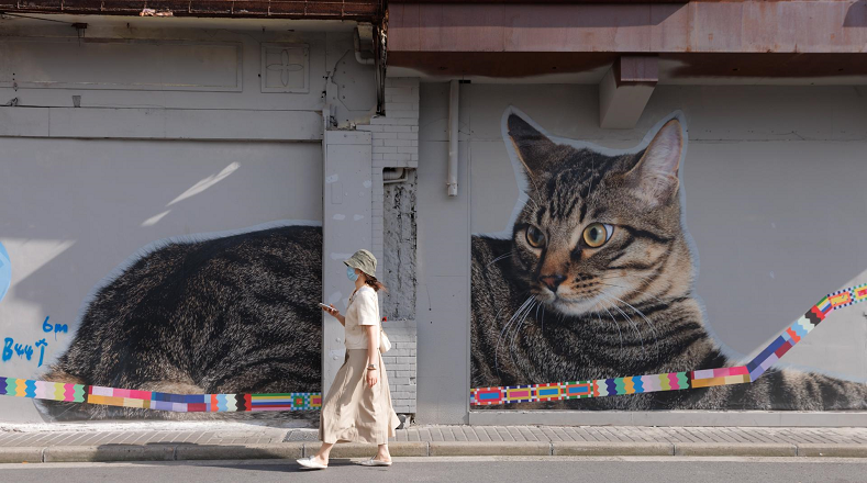 En esta ocasión el artista Tango cubrió una de las calles más antiguas con más de 30 imágenes de gatos domésticos, pertenecientes a familias locales.