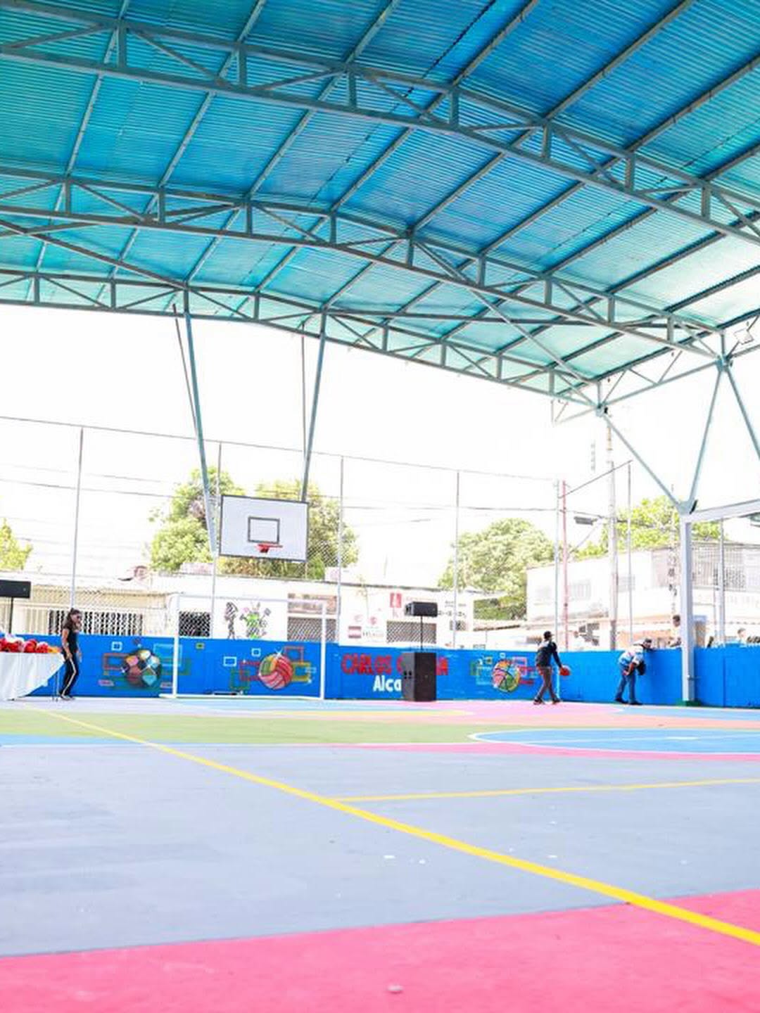 En los espacios deportivos se realizaron diversas labores para dejar las instalaciones en óptimas condiciones con la reparación completa en toda su estructura, labores de pintura interna y externa, demarcación de las líneas de la cancha, así como el muralismo y el embellecimiento de las áreas comunes.