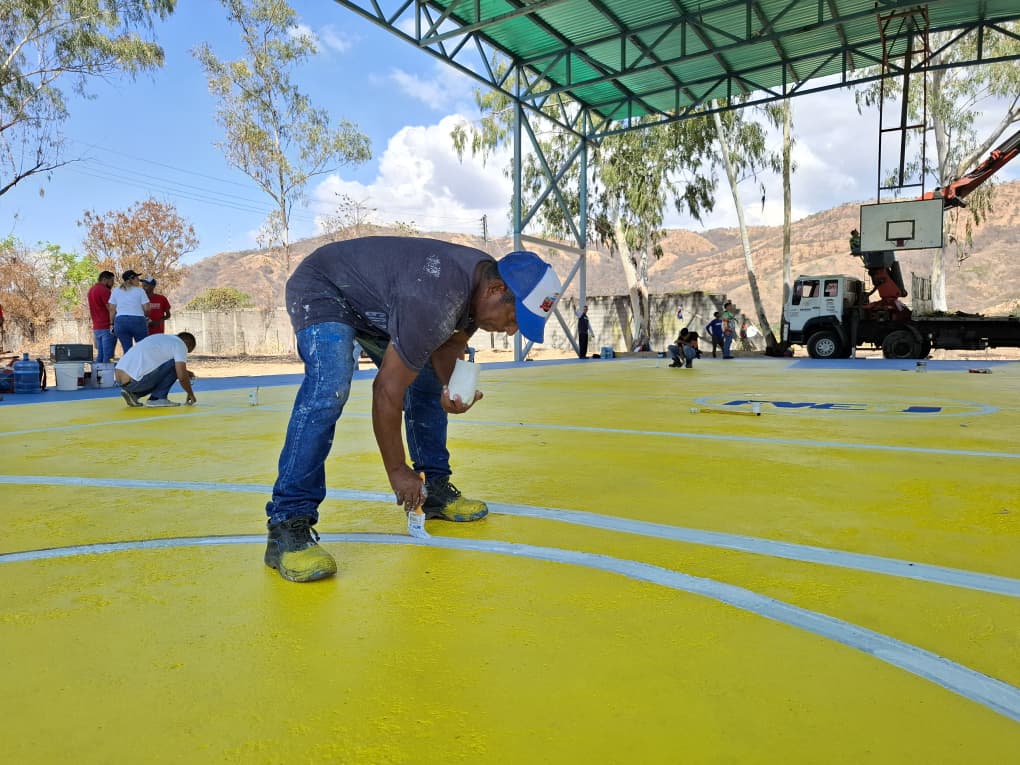 Las labores se desarrollan en la Aldea Universitaria Comunal Samán de Güere, ubicada en la Comuna Jesús Gallardo del municipio Santiago Mariño, estado Aragua, con el objetivo de garantizar espacios dignos, seguros y renovados para la práctica deportiva y la sana recreación de la comunidad estudiantil.