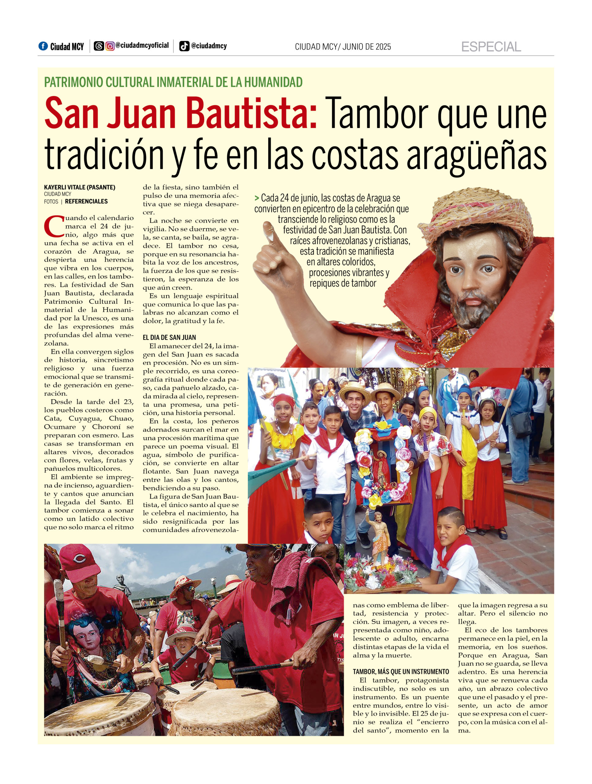 CIUDAD MCY .- Cuando el calendario marca el 24 de junio, algo más que una fecha se activa en el corazón de Aragua, se despierta una herencia que vibra en los cuerpos, en las calles, en los tambores. La festividad de San Juan Bautista, declarada Patrimonio Cultural Inmaterial de la Humanidad por la Unesco, es una de las expresiones más profundas del alma venezolana.