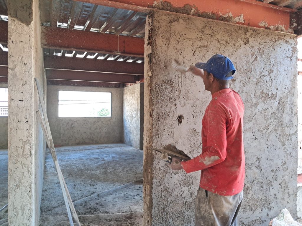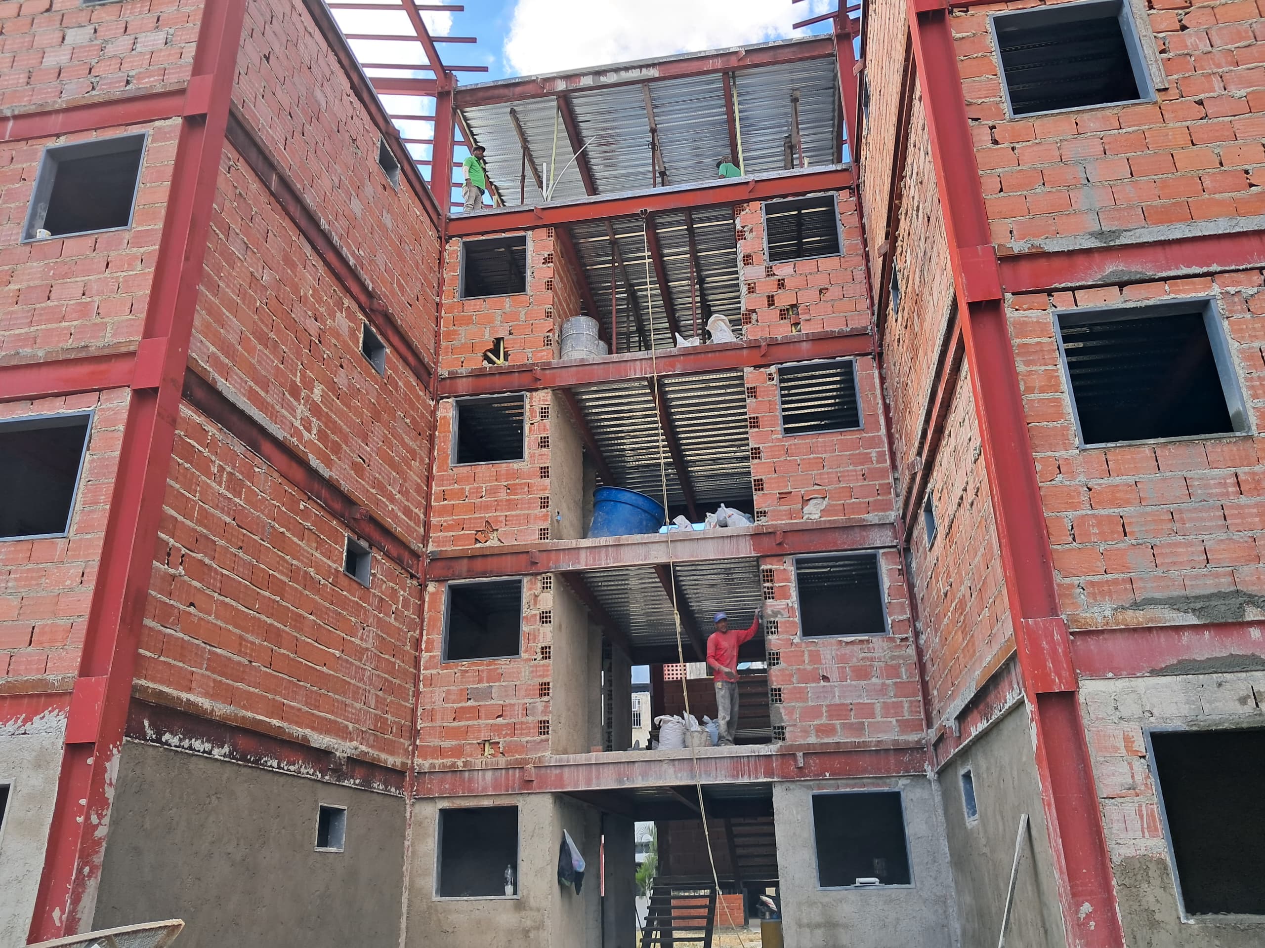 Los obreros comprometidos , efectúan día a día la labor, con el objetivo de culminar en un tiempo breve la construcción optima del edifico.