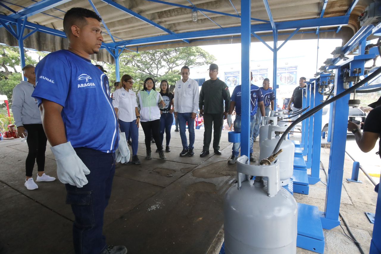 Por su parte, Ymaru Muñoz, presidenta de la empresa Aragua Gas, dio a conocer las labores de adecuación ejecutadas, entre ellas resalta la rehabilitación de romanas y picos de llenado; la instalación de contrapeso, banquillos de llenado, madera y goma para el atraque de camiones, extintores, pintura general.