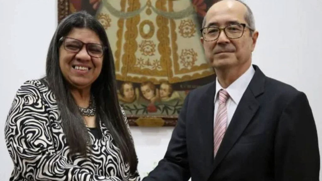 CIUDAD MCY.- La viceministra para Asia, Medio Oriente y Oceanía del Ministerio del Poder Popular para Relaciones Exteriores, Tatiana Pugh, sostuvo un encuentro con el embajador de Japón en el país, Sato Yasushi, con el que reafirmó lazos de amistad y cooperación.