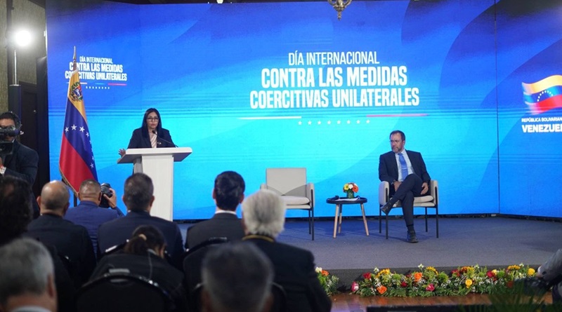 Con la participación de la vicepresidenta ejecutiva de la República Bolivariana de Venezuela, Delcy Rodríguez, y el ministro de relaciones exteriores, Yván Gil, este jueves se realizó en Caracas un acto para conmemorar el Día Internacional contra las Medidas Coercitivas Unilaterales.