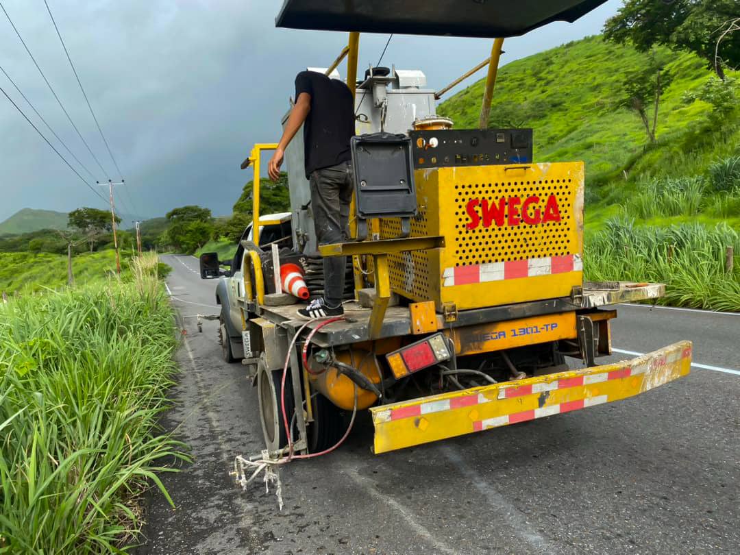 «En esta primera intervención logramos hacer demarcación vial y colocación de tachas reflectivas en los límites que comunican los municipios Sucre y Zamora, específicamente en la salida de Cagua hacia Villa de Cura», informó encargado de la cantera.